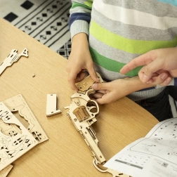 Z rewolwerem Corsac od Robotime będziesz się dobrze bawić, montując, strzelając i wystawiając gotowy model. Dzięki szczegółowej instrukcji złożysz go w ciągu jednej do dwóch godzin.