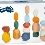 Osiemnaście drewnianych klocków w delikatnych i nowoczesnych kolorach do zabawnej i wymagającej gry. Te zabawki inspirowane kamieniami według Montessori wspierają dzieci w rozwoju małej motoryki i kreatywnego myślenia.