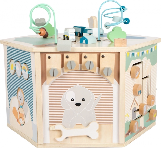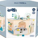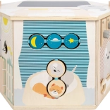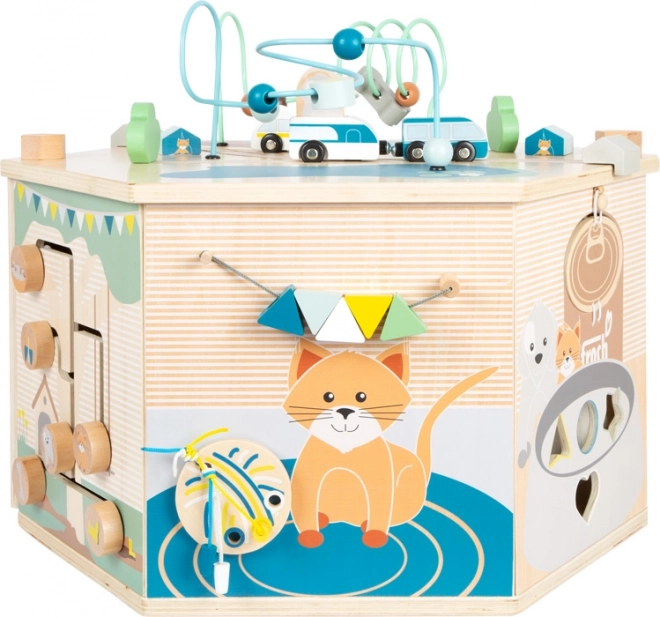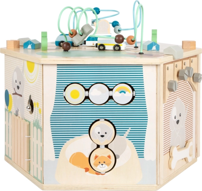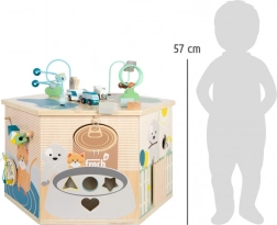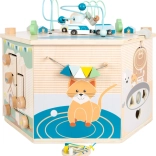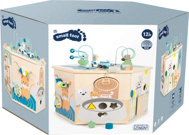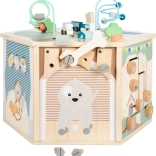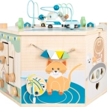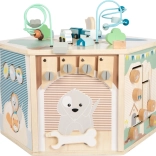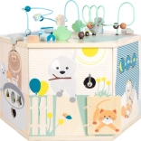 Interaktywna kostka motoryczna SMALL FOOT Pets XXL to przemyślane edukacyjne centrum dla najmłodszych. Osiem paneli rozwojowych wspiera małą motorykę, dotyk i percepcję słuchową, a dzięki dopracowanym ilustracjom przybliża dzieciom codzienne życie zwierząt. Dzieci odkryją tu koralikowy labirynt, sorter kształtów, obrotowe płytki, przewlekankę / sortowanie kolorów, układankę i inne elementy interaktywne, które wspierają koncentrację i myślenie logiczne.