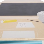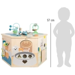 Solidne drewno, subtelne kolory i gumowane nóżki delikatne dla podłogi. Hojne wymiary 57 × 50 × 43 cm oraz wysokość powierzchni do zabawy 32 cm gwarantują wygodę i świetną stabilność.