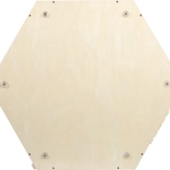 Wyjmowana i dwustronna pokrywa może być mocowana z obu stron bez użycia narzędzi: u góry służy jako koralikowy labirynt z kolejką, po odwróceniu dzieci zyskują tablicę kredową do rysowania. Pokrywę można używać także osobno jako podkładkę do zabawy na podłodze. Wewnątrz kostki jest sporo miejsca na przechowywanie akcesoriów i zabawek, a w zestawie znajdują się trzy pojazdy (minibus, kamper, przyczepa). Subtelne kolory i widoczne usłojenie drewna wpasują się w każdy dziecięcy pokój.