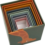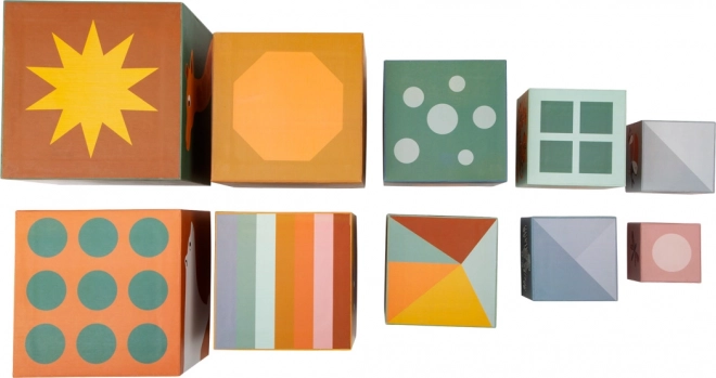 Zakres rozmiarów klocków od najmniejszego 5 cm do największego 14 cm uczy dzieci postrzegania wielkości i porządkowania. Lekki, wytrzymały karton dobrze leży w dłoni i jest delikatny dla mebli.