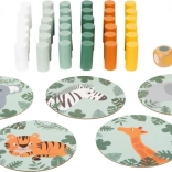 Zabawna drewniana gra zręcznościowo-równoważna inspirowana Jengą: chybotliwa wieża SMALL FOOT SAFARI z kolorową kostką wskazuje, który element wyciągnąć. Rozwija zręczność, poczucie równowagi, koncentrację oraz cierpliwość, a dzięki uroczym motywom safari w nowoczesnych kolorach ucieszy całą rodzinę.