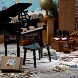 Dzięki solidnej kartonowej walizeczce i pięknym drewnianym elementom gra świetnie sprawdzi się w domu i w podróży. Proste zasady zaangażują całą rodzinę, a dzieci w formie zabawy poćwiczą koncentrację i słownictwo.