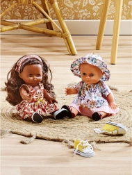 Lalka Ally jest gotowa na każdą przygodę z twoim dzieckiem, ubrana w piękne francuskie stroje z sandałkami i kwiecistym kapelusikiem. Wykonana z elastycznego winylu o zapachu wanilii, który jest przyjemny i pobudza dziecięcą czułość.
