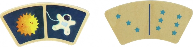 Unikatowe dziecięce domino z kosmicznymi motywami zapewnia kreatywną zabawę dla małych i dużych. Zestaw zawiera 28 drewnianych elementów, które są odpowiednie także dla najmłodszych dzieci dzięki łukowatemu kształtowi.