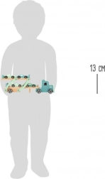 Zestaw zawiera ciężarówkę z naczepą oraz łącznie cztery sportowe autka. Zabawa rozwija koordynację oko–ręka, małą motorykę oraz kreatywne opowiadanie historii. Dzięki wysokiej jakości materiałom i gładko wykończonym krawędziom zabawka jest odpowiednia dla dzieci od 3 lat.