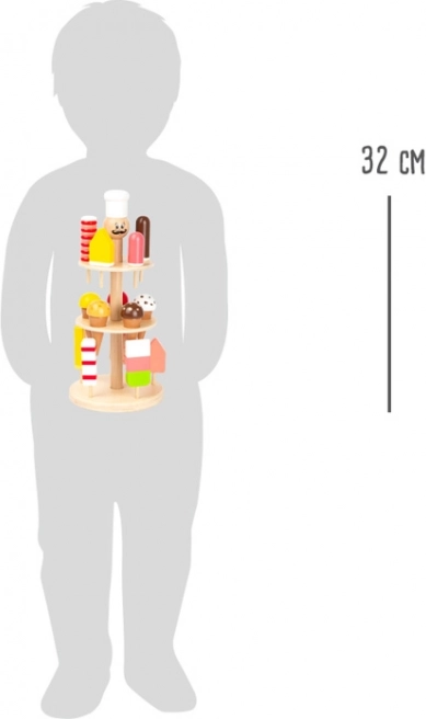To z czułością zaprojektowane stoisko z lodami z litego drewna spełni wszystkie lodowe marzenia. Dzieci mogą wybierać między lodami na patyku a gałkowymi w waflowym rożku i stworzyć własną witrynę pełną kolorowych smakołyków. Dzięki stabilnej konstrukcji idealnie nadaje się do dziecięcego sklepiku, kuchni lub kawiarenki.