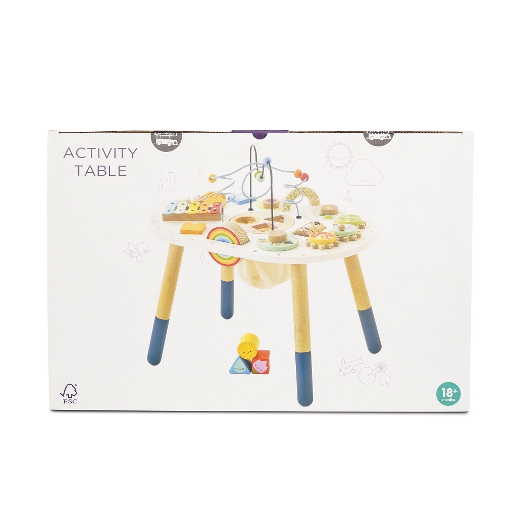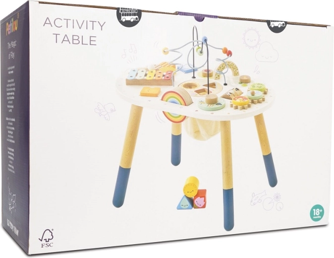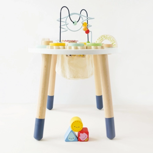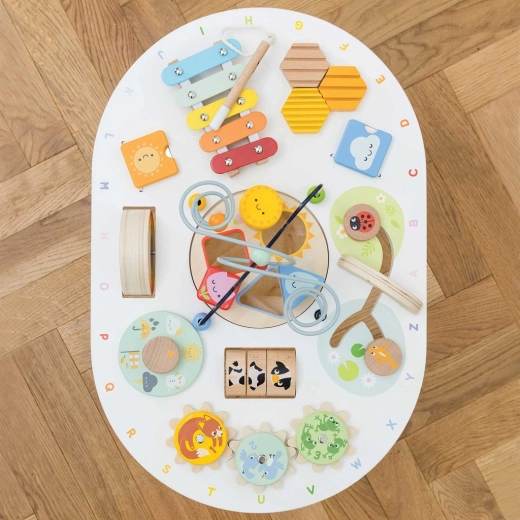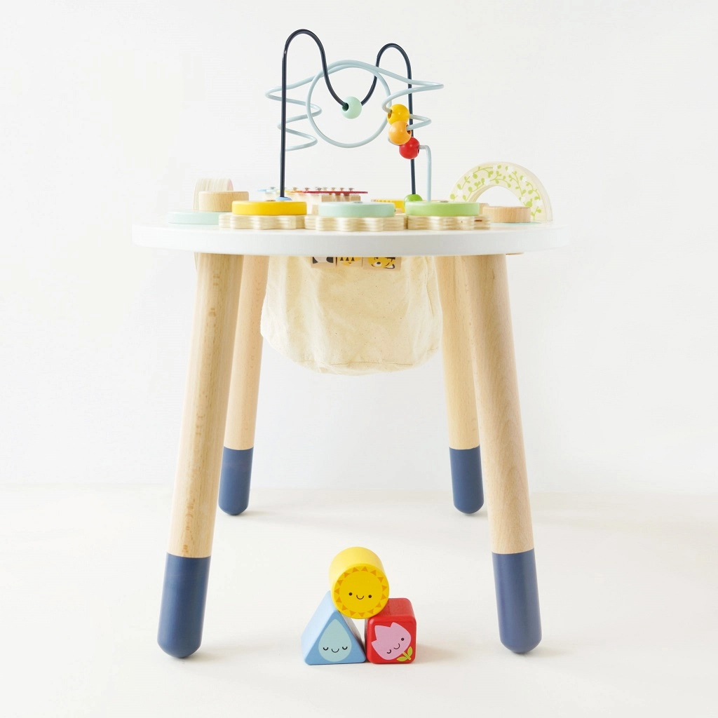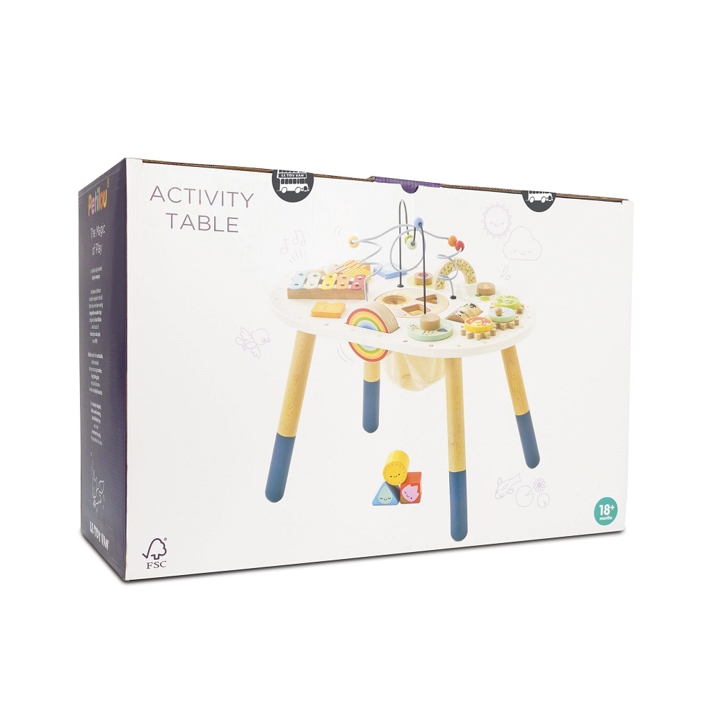 Odkryj wysokiej jakości drewniany aktywny stolik dla maluchów z kolekcji LE TOY VAN Petilou, który wspiera małą motorykę, rozwój sensoryczny i kreatywną zabawę. Oferuje koralikowy labirynt, sorter kształtów, ksylofon, zębate kółka i inne elementy. Wykonany z drewna FSC® i malowany nietoksycznymi farbami dla bezpiecznej i długotrwałej zabawy.