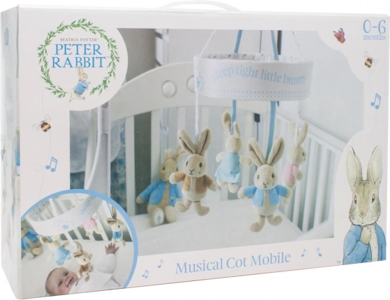 Karuzela zawiera cztery postacie króliczków: Piotruś, Flopsy, Beniamin i Cotton Tail, które dodają dziecięcemu pokojowi uroku oryginalnych historii.