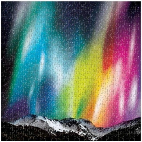Żywe kolory i szczegółowa scena świateł północy nad górami zamieniają układanie w wizualnie porywające doświadczenie.