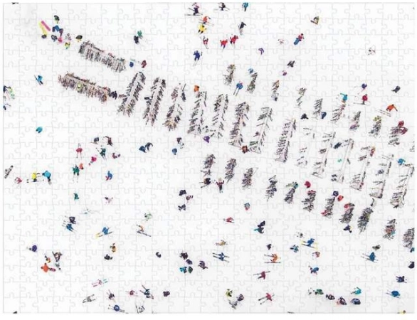 Odkryj ponadczasowe ujęcia z lotu ptaka autorstwa GRAY MALIN w formie premium dwustronnych puzzli. Jedna strona przeniesie Cię w spokojny zimowy pejzaż ze śnieżnymi drzewami, druga ożywa dynamiką kolorowych narciarzy na lśniąco białym śniegu. Każdy element pasuje idealnie, dzięki czemu układanie jest płynne i satysfakcjonujące.