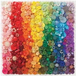 To puzzle zawiera guziki ułożone w pełnym kolorów spektrum, co zapewnia wizualnie atrakcyjne doświadczenie.
