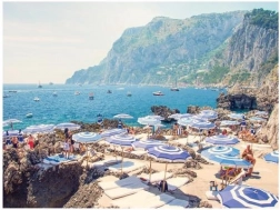 Delektuj się kultowym widokiem z góry: turkusowe morze, kolorowe parasole plażowe i malownicze wybrzeże, które cieszą oczy i duszę.
