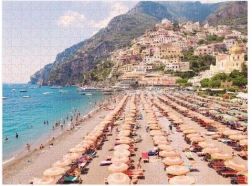Odkryj urok włoskiego wybrzeża z dwustronnymi puzzlami, które oferują dwa zachwycające ujęcia lotnicze pełne słońca, turkusowego morza i kultowych parasoli plażowych. Jedna strona jest błyszcząca, druga matowa, więc z łatwością rozpoznasz, którą układać. Dzięki precyzyjnemu wykrojowi układanie jest płynne i satysfakcjonujące.