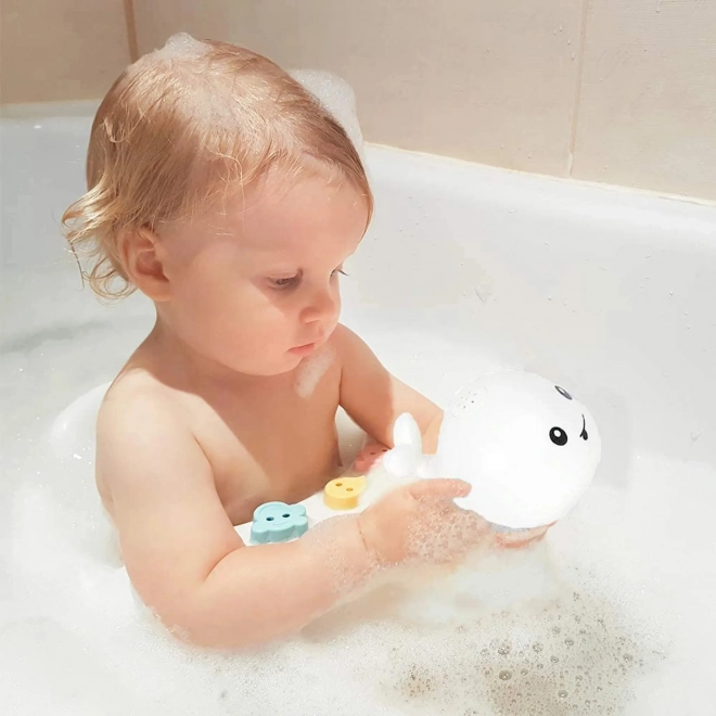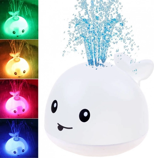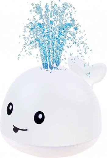 Po zanurzeniu w wodzie wielorybek sam się uruchamia i tworzy delikatną wodną fontannę, która zajmie dzieci na długie minuty.