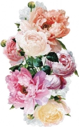 Bogata kompozycja kwiatów piwonii w pastelowych tonach nadaje gotowemu obrazkowi subtelną elegancję i dekoracyjny charakter.