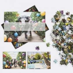Ciesz się podwójną zabawą z dwustronnymi puzzlami Gray Malin, które oferują dwa zachwycające pejzaże z lubianej serii „W parku”.