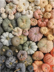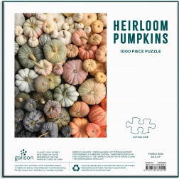 Projekt „Heirloom Pumpkins” autorstwa Christine Chitnis prezentuje bogatą paletę fioletowych, zielonych, żółtych i pomarańczowych dyń. Puzzle zapakowane są w matowe, solidne pudełko, które świetnie sprawdzi się także jako opakowanie prezentowe lub stylowe pudełko do przechowywania. W zestawie znajduje się również pełnokolorowa plansza referencyjna z obrazem docelowym.
