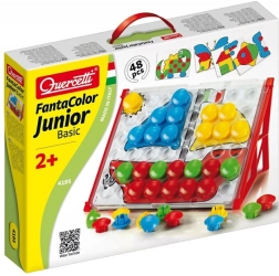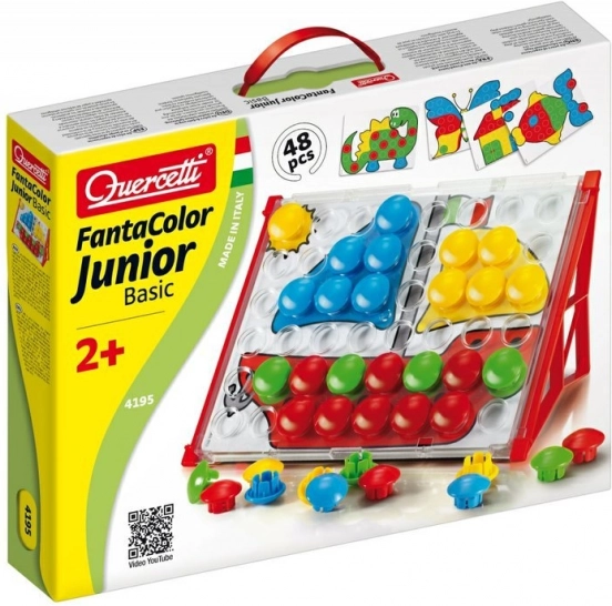 Fantacolor Junior Basic to idealna zabawka dydaktyczna dla przedszkolaków. Dzieci wkładają duże kolorowe guziki w otwory według wzorów lub własnej wyobraźni, trenując w zabawny sposób koordynację oko–ręka, rozróżnianie kolorów oraz myślenie logiczne. Dzięki solidnemu wykonaniu i bezpiecznym wymiarom mozaika jest odpowiednia już od 2. roku życia.