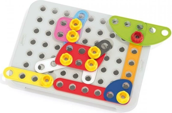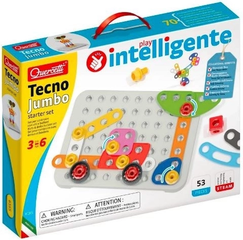 Zestaw konstrukcyjny Quercetti Tecno Jumbo jest doskonały do rozwijania zdolności manualnych, kreatywności i wyobraźni u dzieci, które chętnie uczą się nowych rzeczy.