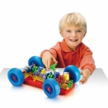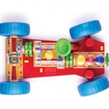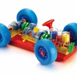 Pomysłowa zabawka, która wręcz zachęca dzieci i ich rodziców do odkrywania, jak działa prawdziwy samochód. Wszystkie podstawowe funkcje mechaniczne zostały tu wiernie odtworzone. Przy silniku dzieci zobaczą, jak pracują cylindry i wał korbowy oraz jak są połączone ze skrzynią biegów, która ma działające 3 pozycje (neutral, 1. i 2. bieg). Mechanizm różnicowy przenosi ruch na tylne koła i pozwala im obracać się niezależnie od siebie. Wszystkie części mechaniczne można łatwo przymocować do podwozia, a także zwalniać je za pomocą specjalnych sprężynowych żółtych przycisków. Kierownica działa i pozwala samochodowi skręcać lub wjeżdżać na parking. Dzieci mogą również podnieść auto z przodu i z tyłu za pomocą specjalnych wózków, a kręcąc korbą przy przednim z nich wprawić cały mechanizm w ruch. Podczas zmiany poszczególnych biegów zobaczą, jak zmienia się prędkość obrotu kół i cylindrów. Po włączeniu biegu jałowego zauważą też, jak silnik i mechanizm różnicowy zostają od siebie odłączone. Przeznaczone dla dzieci od 3 lat. Główne cechy: odtworzone podstawowe funkcje mechaniczne, działająca kierownica i części mechaniczne, dla dzieci od 3 lat
