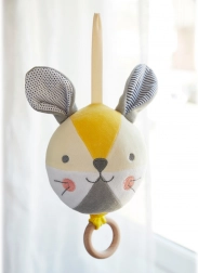 Melodyczna piłeczka w kształcie króliczka została zaprojektowana, by uspokajać i zabawiać niemowlę. Wystarczy delikatnie pociągnąć za drewniany pierścień, a rozbrzmi łagodna melodia „You Are My Sunshine” przez około dwie minuty. Dzięki mięciutkiej powierzchni z organicznej bawełny idealnie nadaje się do przytulania i pierwszych dotykowych odkryć.