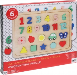 Petit Collage Układanka z liczbami i kształtami to świetny sposób, aby nauczyć dzieci podstaw matematyki i rozpoznawania kształtów. Zawiera 22 elementy oraz 3 dwustronne karty ze słówkami w sześciu językach: angielskim, hiszpańskim, francuskim, niemieckim, niderlandzkim i włoskim. Układanka wykonana jest z wysokiej jakości drewna z certyfikatem FSC®, co zapewnia ekologiczną i zrównoważoną produkcję.