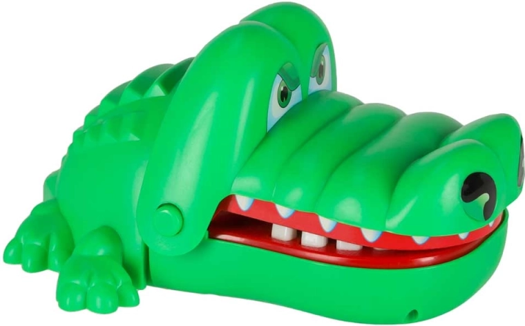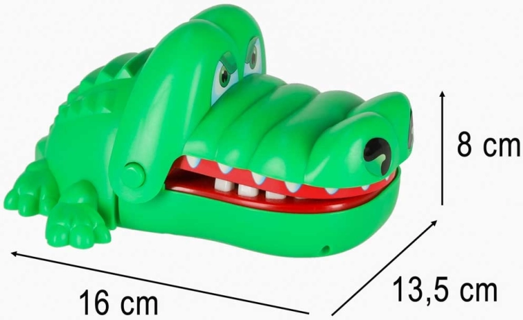 Możesz grać samodzielnie – próbuj kolejno naciskać wszystkie zęby – albo w grupie: każdy gracz naciska jeden ząb, a ten, kogo krokodyl „ugryzie”, odpada w tej rundzie. Gra jest resetowana i trwa dalej, aż zostanie zwycięzca. Kompaktowy rozmiar czyni ją idealnym pomysłem na prezent i zabawą w podróży.