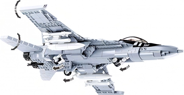 Model myśliwca z dopracowanym kokpitem, podwieszanymi rakietami i wyrazistymi silnikami oferuje atrakcyjny wygląd do zabawy i ekspozycji.
