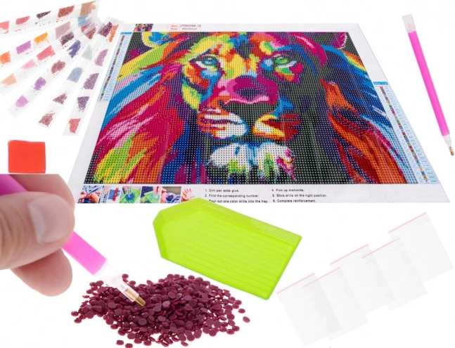 5D diamentowa mozaika z motywem tęczowego lwa to idealny wybór na chwile odpoczynku i rozwój motoryki małej. Proces nie wymaga specjalnych umiejętności – zgodnie z kodem kolorów po prostu aplikujesz kryształki na samoprzylepne płótno i obserwujesz, jak obraz przemienia się w lśniącą mozaikę.