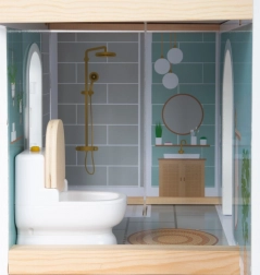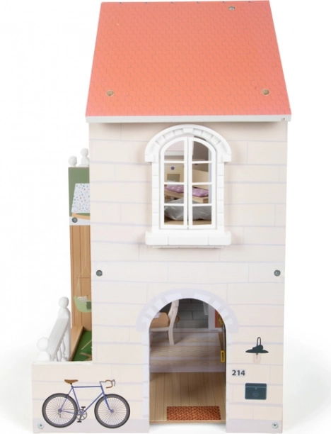 Ten nowoczesny domek dla lalek wprowadza otwartą koncepcję mieszkania, w której dzieci odkryją kuchnię z jadalnią, sypialnię, łazienkę oraz duży taras z miejscem do siedzenia. Dzięki otwartej stronie zabawa jest dostępna od frontu i komfortowa nawet dla kilku dzieci naraz. Jasna fasada i stonowane kolory świetnie wpasują się w każde wnętrze.