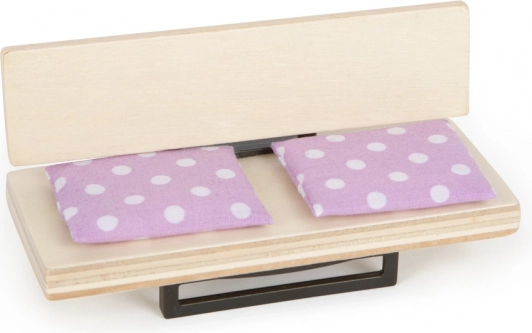- Domek, 8 szt. mebli, tekstylne dodatki (pościel, poduszki)