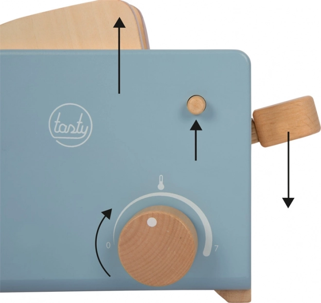 Ten realistyczny drewniany zestaw Small foot Tasty zamieni każdą dziecięcą kuchnię w ulubione miejsce porannych rytuałów. Dzieci wkładają kromki, naciskają dźwignię, a dzięki funkcji wyskakiwania gotowy tost „wyskakuje”. Obracane klikające pokrętło wiernie naśladuje ustawianie poziomu przypieczenia, co zwiększa autentyczność zabawy.