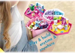 Zestaw Sluban w różowym wiadrze zapewnia godziny zabawy i rozwój wyobraźni. Przenośne opakowanie z pokrywką – płytką konstrukcyjną – umożliwia budowanie zawsze i wszędzie. Dzięki niskiemu poziomowi trudności jest idealny dla dzieci od 4 lat, a dzięki kompatybilności z LEGO, COBI i MEGA BLOKS łatwo rozbudujesz swoją kolekcję.