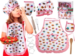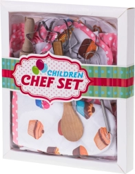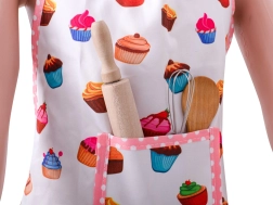 Oprócz ubrań, zawiera również drewniane przybory, w tym wałek, łyżkę, kilka foremek do wycinania ciasta i trzepaczkę. Wszystkie akcesoria wykonane z trwałych materiałów, idealne do godzin udawanego gotowania i pieczenia.