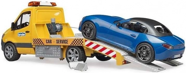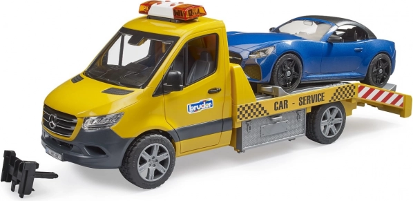 Laweta BRUDER wzorowana na MB Sprinter zachwyca detalami i bogatą funkcjonalnością. Dzieci ucieszy belka świetlna z dźwiękiem, realistyczna rampa z wysuwanymi najazdami i klinami oraz otwierane drzwi i boczne schowki. W komplecie jest sportowy kabriolet z odpinanym dachem i wymiennymi kołami.