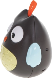 Kontrastowe detale, ruchome duże oczy i delikatne grzechotanie wewnętrznych dzwoneczków naturalnie przyciągają uwagę. Różne struktury powierzchni oraz praktyczna pętelka na górze rozwijają małą motorykę i wrażenia dotykowe.