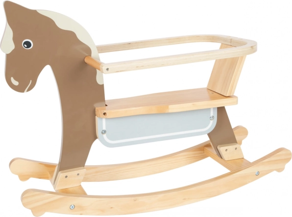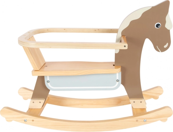 Konik na biegunach small foot to solidne połączenie litego drewna i sklejki w naturalnych odcieniach, które ociepli każdy dziecięcy pokój. Dzięki przejrzystej instrukcji montażu złożysz go z łatwością, a Twoje dziecko będzie cieszyć się delikatnym, płynnym ruchem kołysania.