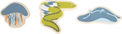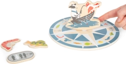 Poszczególne części wykonane są z wytrzymałej sklejki i umieszczone w praktycznym kartonowym pudełku, które pełni również rolę planszy do gry.