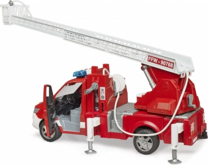Drabina jest wysuwana i pozwala na obracanie, podczas gdy nogi stabilizujące zapewniają bezpieczeństwo podczas zabawy. Pojazd ma otwierany schowek, który może służyć do przechowywania dodatkowego sprzętu strażackiego. Kabina jest kompatybilna z figurkami z kolekcji BRUDER BWORLD.
