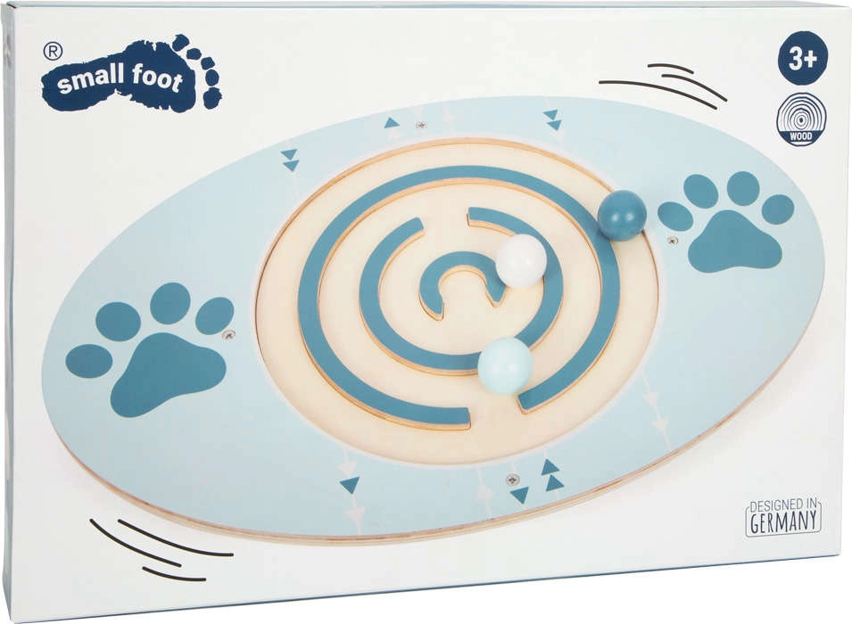Drewniana deska balansowa Small Foot łączy zabawę i ruch. Owalna powierzchnia ze spiralnym torem i swobodnie poruszającymi się kuleczkami sprawdza Twoją równowagę – przechylając deskę, prowadzisz kuleczki przez labirynt, trenując przy tym koordynację ręka–oko, spostrzegawczość i stabilność.