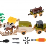 Powitaj swoje dzieci na gospodarskiej farmie! Ten zestaw do zabawy jest idealny dla dzieci, które kochają życie na farmie i chcą zanurzyć się w świecie rolnictwa. W opakowaniu znajdziesz wszystko, czego mały rolnik potrzebuje, w tym traktor, konie, przyczepy i śrubokręty.