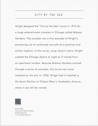 Te wspaniałe puzzle wprowadzają do Twojego domu ikoniczną sztukę Franka Lloyda Wrighta. Mural „City by the Sea” został zaprojektowany w 1913 roku dla kompleksu rozrywkowego w Chicago i jest uważany za pionierski przykład wykorzystania żelbetu w sztuce. Puzzle przedstawiają ten obraz przez okno mieszkania i zawierają detale podkreślone folią, co zapewnia nowe spojrzenie na to ikoniczne dzieło.