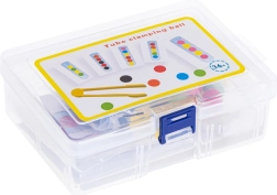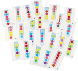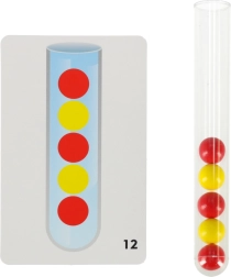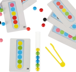 Zawiera 24 dwustronne karty, które pokazują różne wzory do odtworzenia w probówce. Te zadania pomagają rozwijać myślenie dzieci oraz zdolności koncentracji.