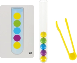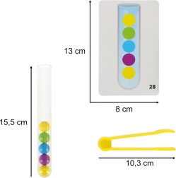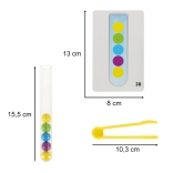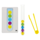Odkryj zabawny i interaktywny sposób, aby wspierać umiejętności Twojego dziecka dzięki temu świetnemu zestawowi edukacyjnemu. Gra skupia się na sortowaniu kulek do właściwych probówek za pomocą rąk lub dołączonych szczypczyków.