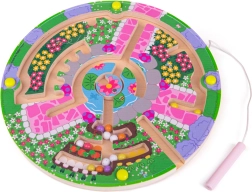 To okrągłe drewniane labirynty z barwną ogrodową grafiką oferują dzieciom intuicyjną i wciągającą zabawę. Dołączony magnetyczny wskaźnik prowadzi kulki przez ścieżki i przeszkody, co naturalnie wspiera koncentrację, precyzję ruchów oraz rozwój logicznego myślenia.