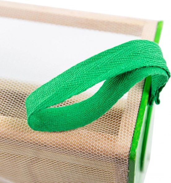 Krata jest wyposażona w materiałowy uchwyt, co ułatwia obsługę i przenoszenie. Przy produkcji użyto wysokiej jakości i odpowiedzialnie pozyskanych materiałów, które zapewniają długą żywotność produktu.