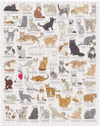 Ciesz się godzinami zabawy układając ulubione rasy kotów. Ta układanka zawiera pięćdziesiąt ręcznie ilustrowanych kotów, idealna dla każdego miłośnika tych zwierząt.