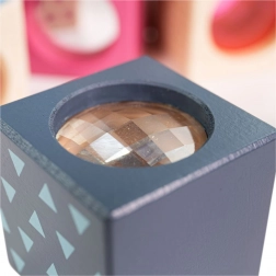 Fakturowane powierzchnie, elementy wizualne (lusterko, pryzmat optyczny, wizjer) oraz dźwiękowe (dzwoneczek, piszczałka, grzechotka) stymulują dotyk, wzrok i słuch, wspierając naturalną naukę poprzez zabawę.